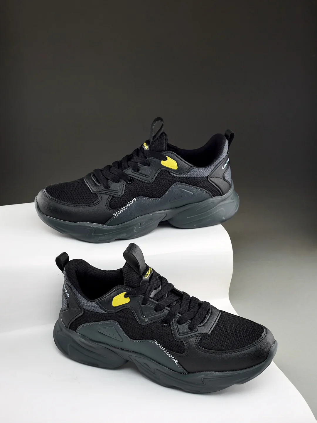 Own the damn streets with the Campus TALON Men’s Sneakers in black and dark grey—a perfect mix of laid-back vibes and a next-gen chunky look. Built with a breathable Mesh and PU upper, these kicks are as stylish as they are functional. The lightweight EVA sole, paired with Pillofoam tech, keeps every step super cushioned, while the Motion Massage insole takes comfort to the next level. Whether you’re running errands or flexing with your crew, these sneakers bring comfort, style, and a touch of edge to every move. Lace-up, and let the compliments roll in!
