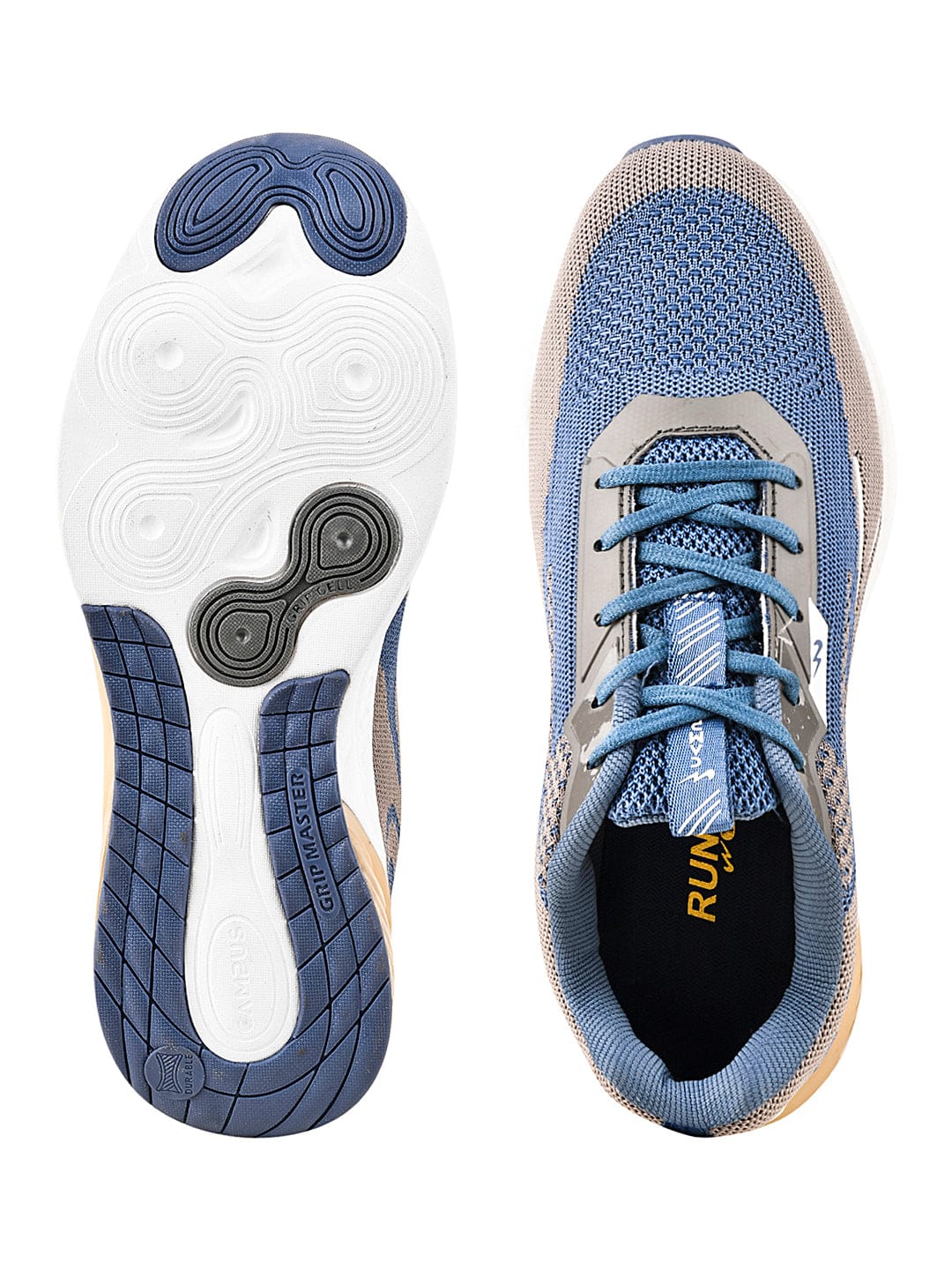 Slide your way through life in utmost comfort and style with CAMP SKID Grey Men's Running Shoes. The intriguing patterns of slate blue on the light grey mesh are creating the perfect contrast your everyday look needs. The cool lace-up shoes are made extra cozy with a full-length air unit and a TPU-made sole. This time, let the cool vibes take over with CAMPUS!